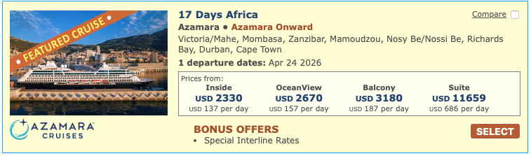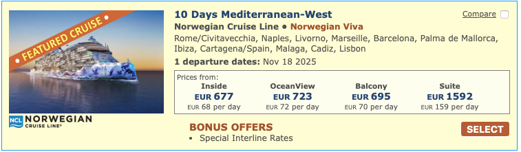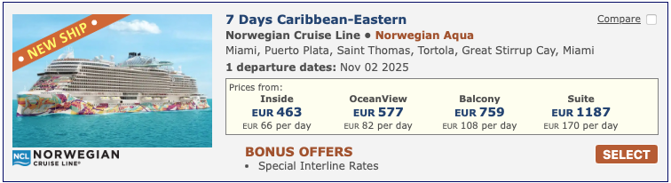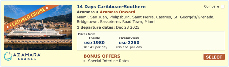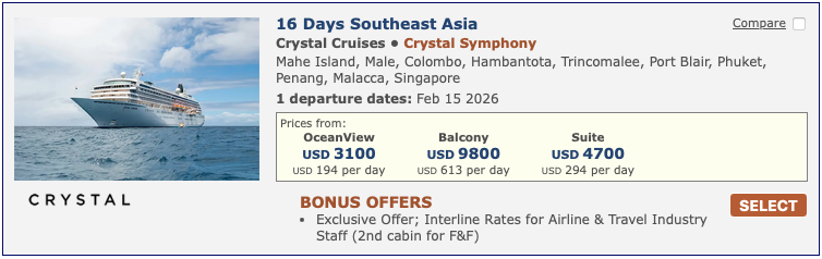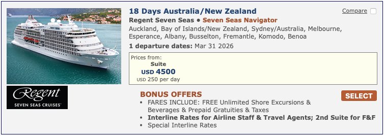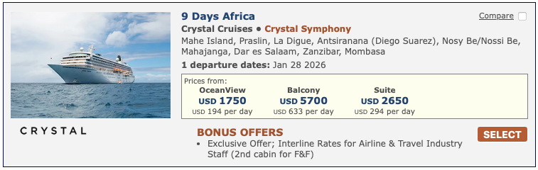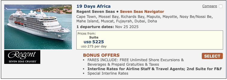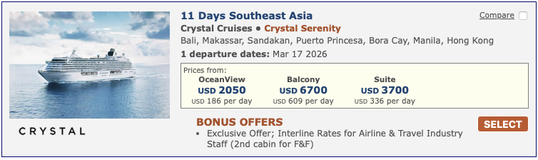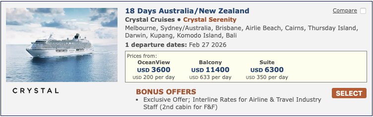 Discounted cruise fares for airline staff and travel industry employees